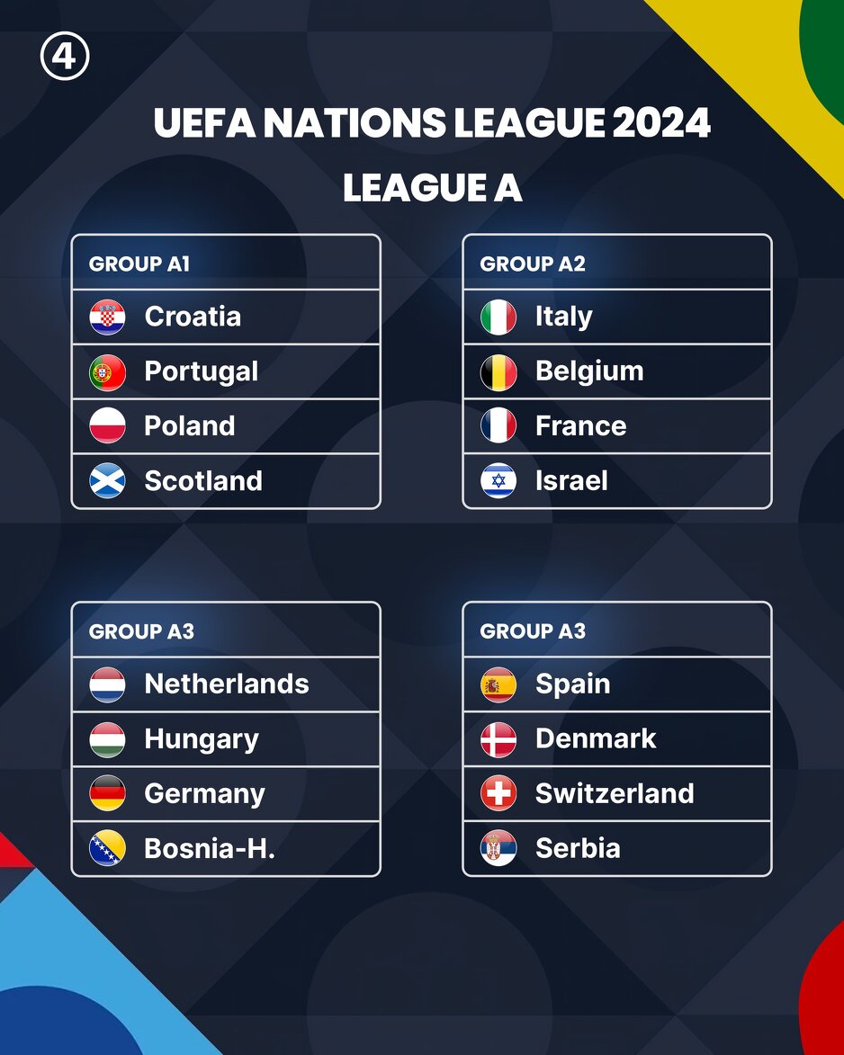 Sve grupe elitne A Divizije Lige nacija: