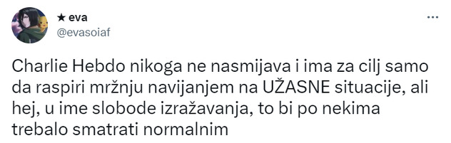 Nakon što je magazin objavio karikaturu na Twitteru, ova društvena mreža je preplavljena osudama te umjetničke zamisli, a mnogi postavljaju fotografije, kojima žele poniziti Charli Hebdo.