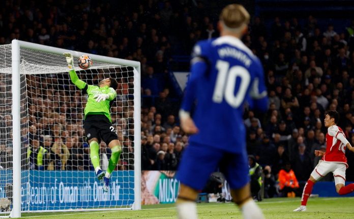 Poveo je Chelsea golom Colea Palmera iz penala u 15. minuti, a prethodno je kazneni udarac skrivio Saliba, tako što ga je loptom u ruku s dva metra glavom pogodio Mudryk.