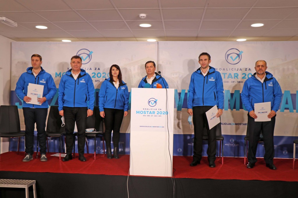 Na konferenciji za novinare obratili su se predstavnici pet političkih stranaka (SDA, SBB, DF, SBiH, BPS), članica “Koalicija za Mostar 2020”.