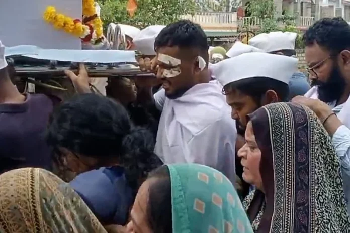 Također, majka Ramesha hodala je pored kovčega u plavom sariju zajedno s drugim ožalošćenima, dok ga je on nosio na desnom ramenu.