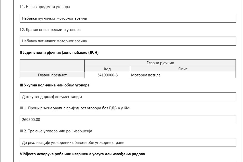 Također se navodi da će ugovor biti sklopljen s ponuđačem koji ponudi najnižu cijenu te da je riječ o otvorenom potupku. Rok za prijem ponuda je 12. juni 2023. godine.