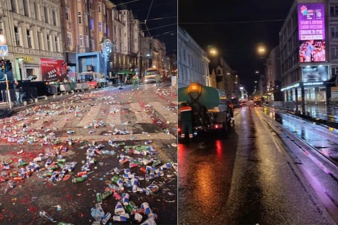 Objavljen je video koji prikazuje kakvo je stanje bilo neposredno nakon završetka nastupa te kako ulica izgleda nakon čišćenja.