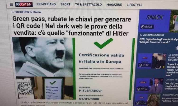 Ministarstvo javnog zdravstva Nizozemske istražuje važeći QR kod za pristup certifikatu vakcinacije protiv koronavirusa izdat na ime Adolfa Hitlera.