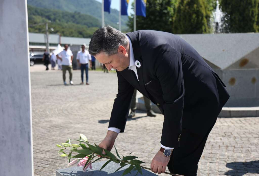 Predsjedavajući Predsjedništva Bosne i Hercegovine Denis Bećirović danas je položio vijenac i odao počast žrtvama genocida u Memorijalnom centru u Potočarima u okviru obilježavanja 29. godišnjice genocida počinjenog nad Bošnjacima u i oko Srebrenice.