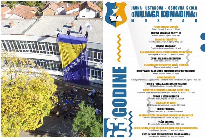 Osnovna škola “Mujaga Komadina” Mostar u sklopu obilježavanja 63. godine od osnivanja, pripremila je bogat edukativni, kulturni i sportski program koji će trajati cijeli mjesec april.