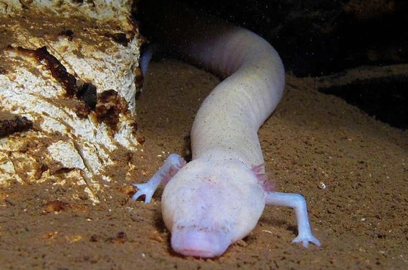 Prilagodila se životu u potpunom mraku, ima blijedu kožu i nema razvijene oči. Može živjeti desetljećima, a ponekad čak i do stotinu godina, prenosi Klix.