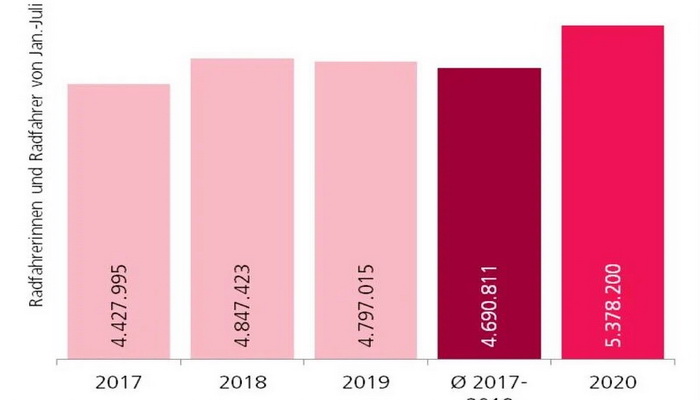 U odnosu na trogodišnji prosjek, od 2017. do 2019. godine, radi se o porastu od 14,7 posto ili 687.000 biciklista.