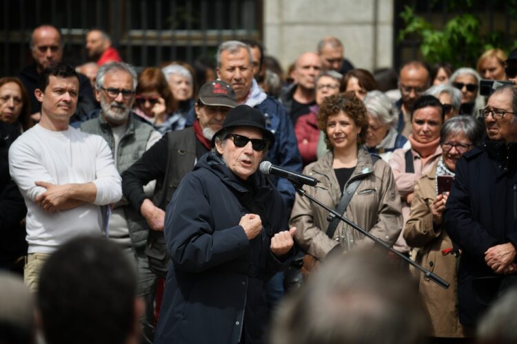 Nekoliko hiljada ljudi, uključujući umjetnike i intelektualce, okupilo se na trgu ispred Muzeja Reine Sofije.