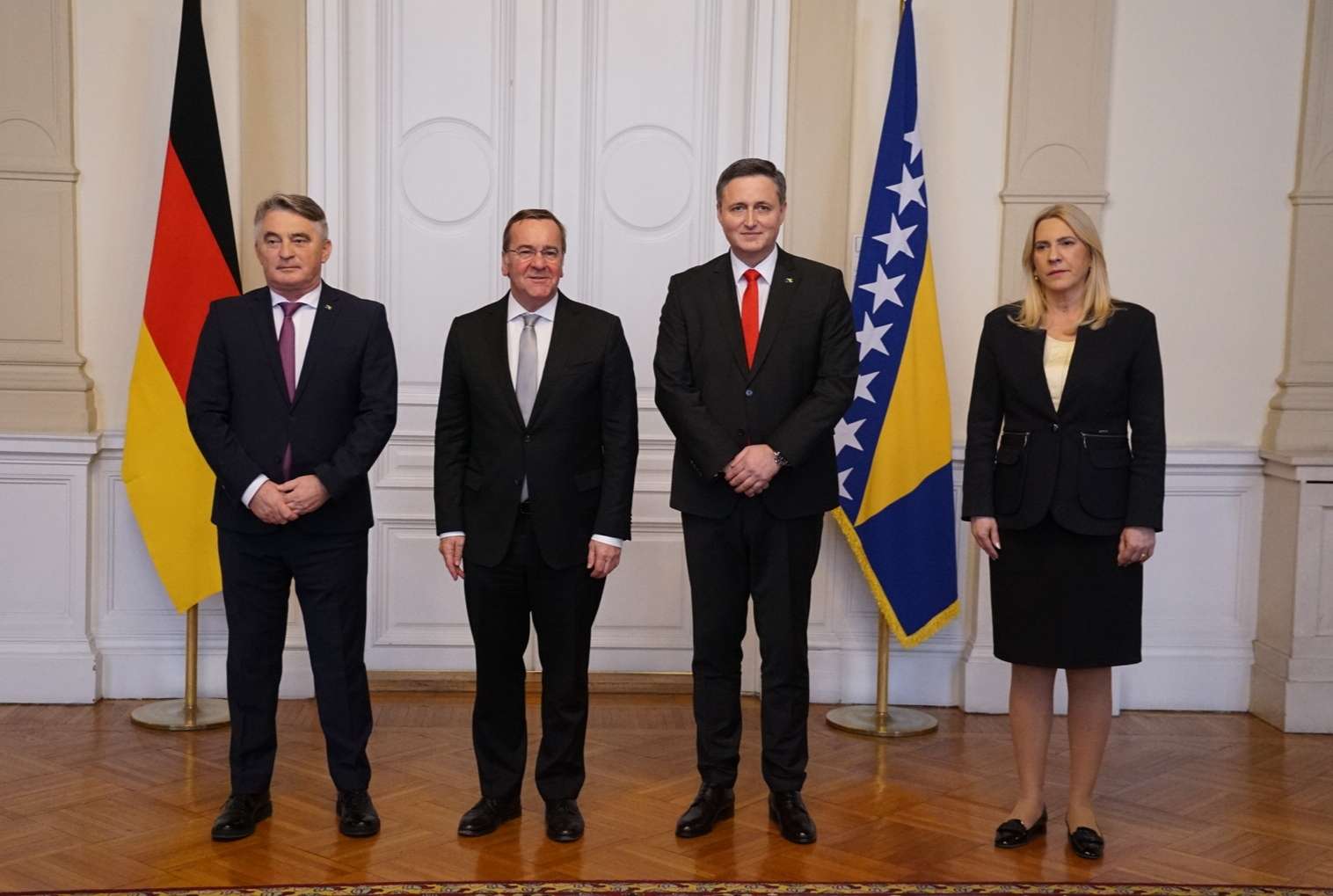 Članovi Predsjedništva BiH razgovarali su s ministrom odbrane Savezne Republike Njemačke Borisom Pistoriusom o sigurnosnoj situaciji u Bosni i Hercegovini i Zapadnom Balkanu. Potcrtana je važna uloga SR Njemačke, kao jednog od ključnih partnera Bosne i Hercegovine u procesu evropskih i euroatlantskih integracija, saopćeno je iz Kabineta člana Predsjedništva BiH Denisa Bećirovića.