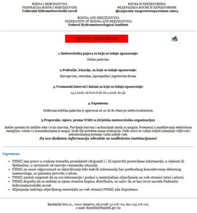 Meteorolozi upozoravaju na obilne padavine koje će od 25. februara u ranim jutarnjim satima zahvatiti Hercegovinu, centralnu, jugozapadnu i jugoistočnu Bosnu.