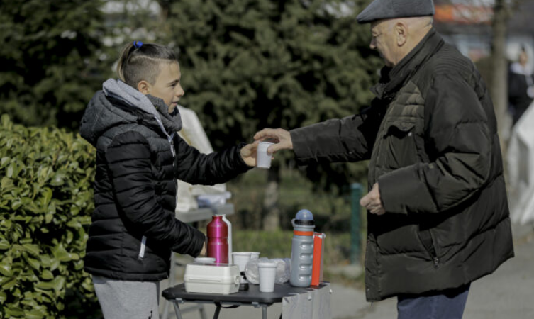Prodaje čaj na svom malom štandu na trgu i na taj način sakuplja novac za pomoć Turskoj i Siriji.