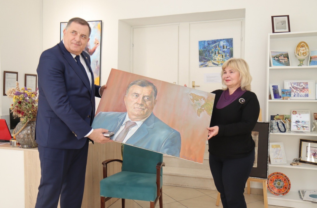 “Hvala Svetlani Majhofer, vlasnici Artem galerije. Danas mi je za rođendan poklonila portret, ulje na platnu akademskog slikara Bogdana Radovića”, napisao je Dodik na Twitteru.