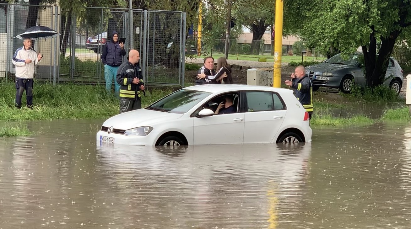 Na poziv stanara obližnje zgrade, nakon dvadesetak minuta intervenisali su vatrogasci, koji su čišćenjem odvoda pokušali smanjiti nivo vode, te vozilo u koje je u međuvremenu počela prodirati i voda, izvukl iz formiranog “jezera”.