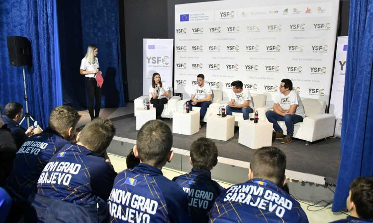 Sportske igre mladih su, u sklopu projekta ‘Youth Sports Fair Chance’ koji finansira Erasmus+Sport program Evropske unije, organizovale u amfiteatru Pete gimnazije i Gimnazije ‘Dobrinja’ druženje mladih fudbalera iz FK Novi Grad, te igrača i predstavnika FK Sarajevo i FK Željezničar.