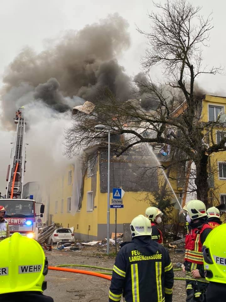 Očevici su čuli eksploziju jutros oko 8.00 sati. Na jednom snimku se u mjestu Langenzersdorf vidi da gori posljednji sprat četverospratne zgrade, a dio objekta je u ruševinama.