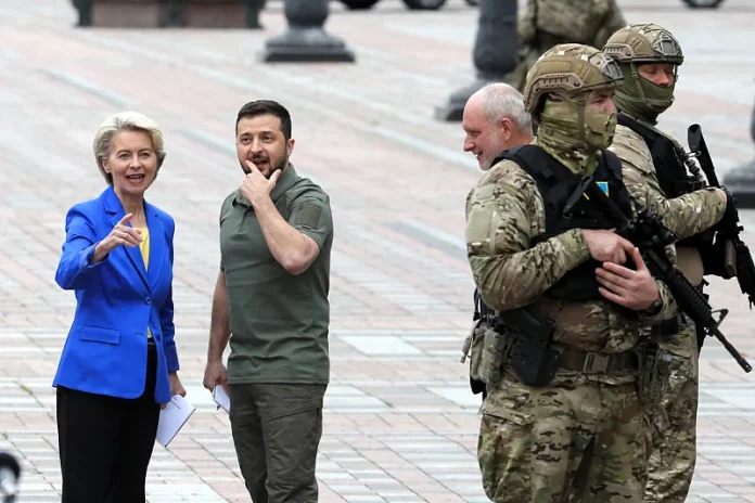 Evropski zvaničnici i ukrajinska vlada ističu da je kandidatura Kijeva hitna. Rusija će vjerovatno pokušati “zaustaviti naše kretanje prema EU”, rekao je ukrajinski predsjednik Volodimir Zelenski novinarima u Kijevu, objašnjavajući važnost formaliziranja datuma pristupa 2027. godine.