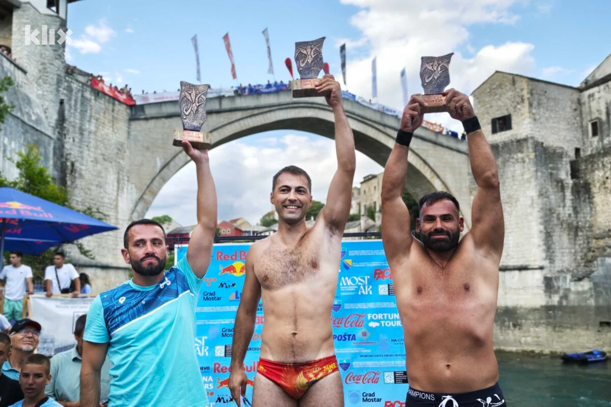 U Mostaru su danas održani 459. skokovi sa Starog mosta, a takmičenje je privuklo nekoliko hiljada gledatelja koji su ispratili pobjedničke skokove Emela Tire i Evalda Krnića.