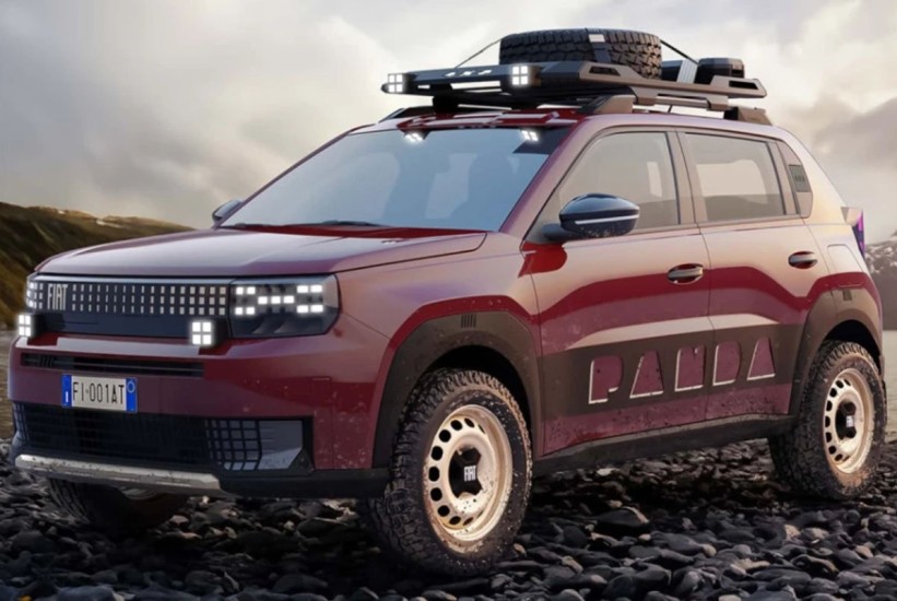 Četvorostruki LED farovi upotpunjuju dizajn sa “pikselizovanim” svetlima, a dodatni detalji uključuju oznaku 4×4 na vratima prtljažnika i natpis “Panda” u crnoj zaštiti na bočnim stranama vozila.