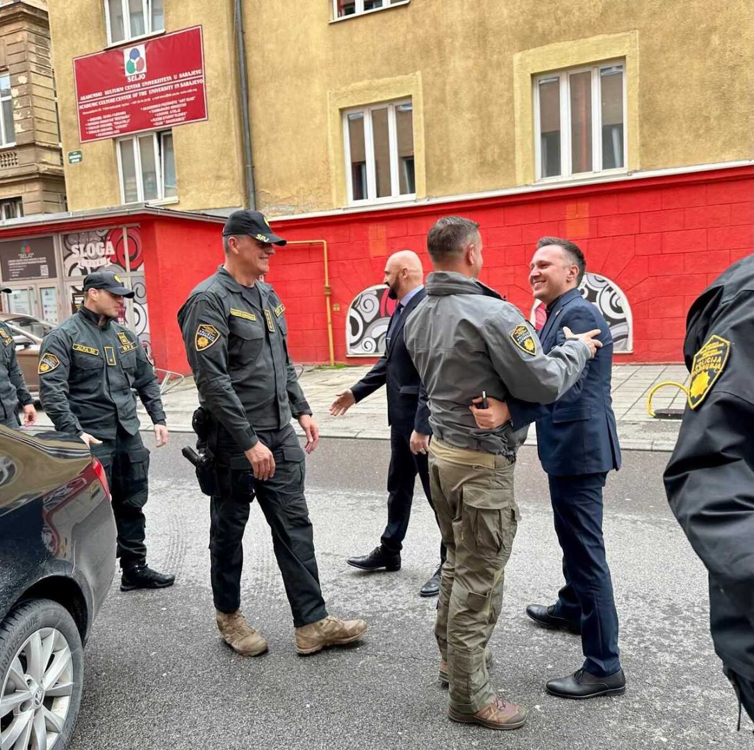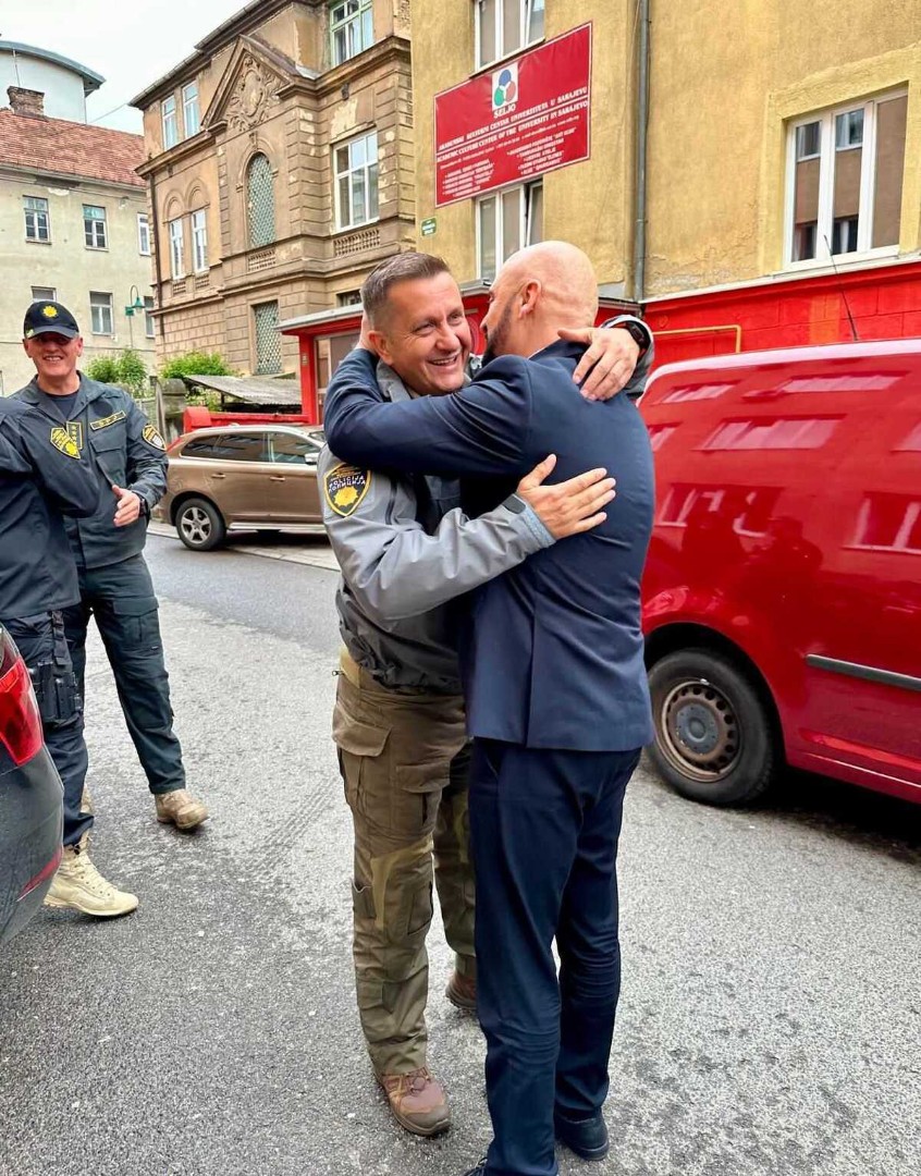 Prvi čovjek FUP-a Vahidin Munjić i šef specijalne jedinice FUP-a Mustafa Selmanović svečano su jutros dočekani u prostorijama FUP-a.