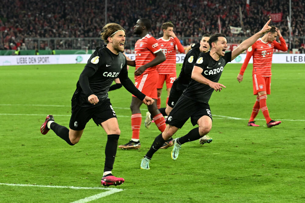 Bayern je poražen od Freiburga jer su gosti u 95. minutu dali gol iz penala. Lucas Holer je dao gol za veliku radost igrača Freiburga koji su izbacili najmoćniji njemački tim iz Kupa.