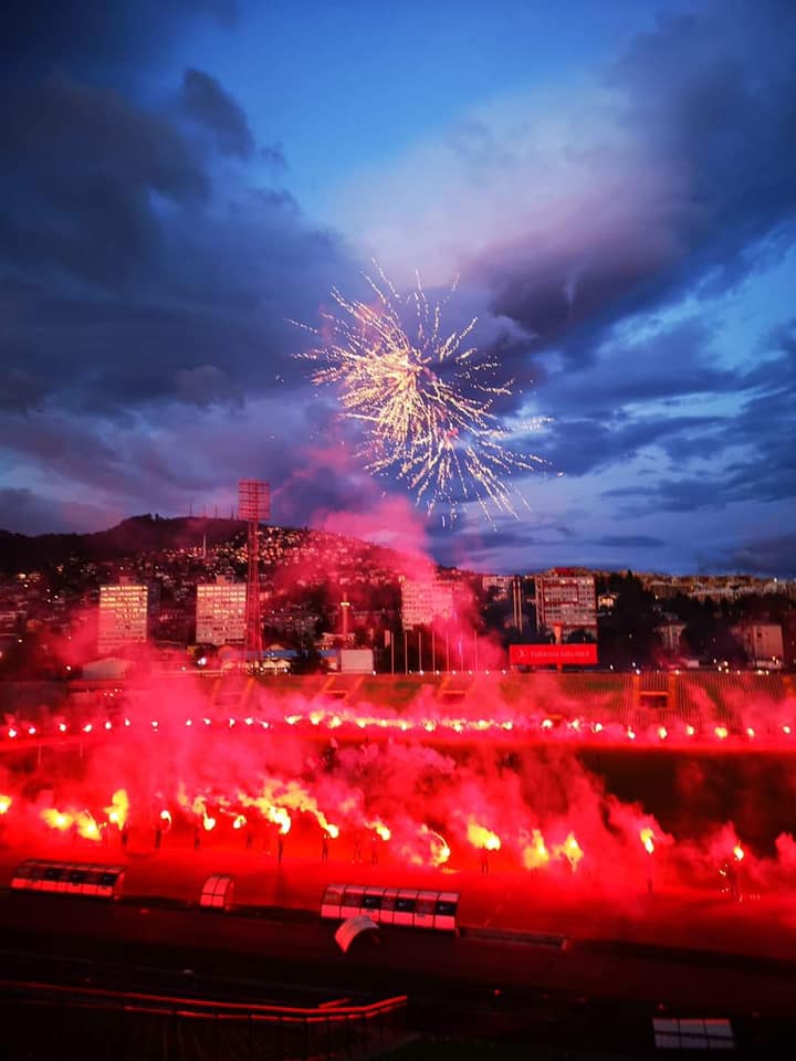 Fudbalski klub Sarajevo večeras je na ulicama glavnog grada BiH proslavio titulu prvaka Bosne i Hercegovine. Navijači su dočekali bordo tim ispred Olimpijskog stadiona “Asim Ferhatović Hase”, a potom je organizovan defile kroz grad predvođen šampionskim autobusom. Uslijed pandemije koronavirusa nije bilo moguće organizovati uobičajnu proslavu titule u ulici Maršala Tita.