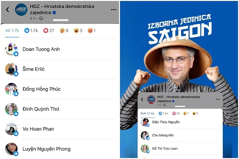No, mnogima je zapalo za oko da većina osoba koja je “lajkala” tu objavu na društvenoj mreži ima vijetnamsko ime i prezime. Primjera radi, Lê Yến My, Hồ Lan Phuong Vân i Phi Tai Trinh neki su od profila koji su reagovali na pomenutu HDZ-ovu objavu.