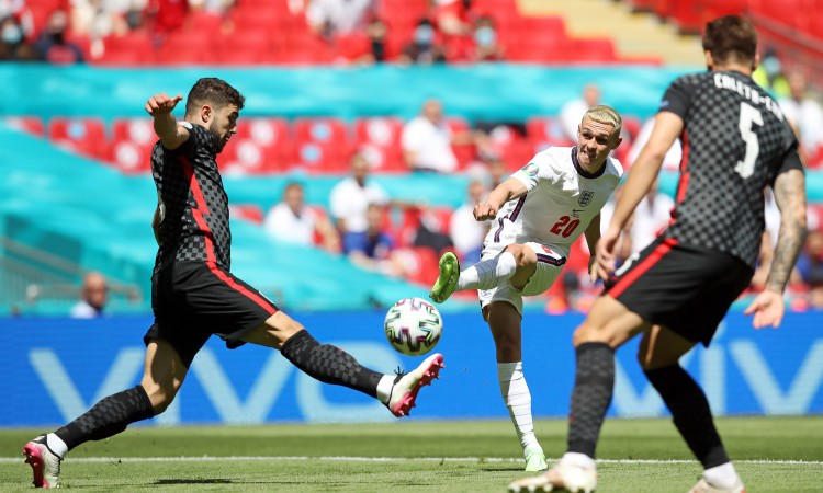 Englezi su od početka krenuli ofanzivno, vršeći konstantan pritisak, a u prvih desetak minuta imali su dvije dobre prilike. Najbolju je propustio Foden u 6. minuti kada je pogodio stativu, a tri minute kasnije golman Livaković obranio je Phillipsov udarac s ruba šesnaesterca.