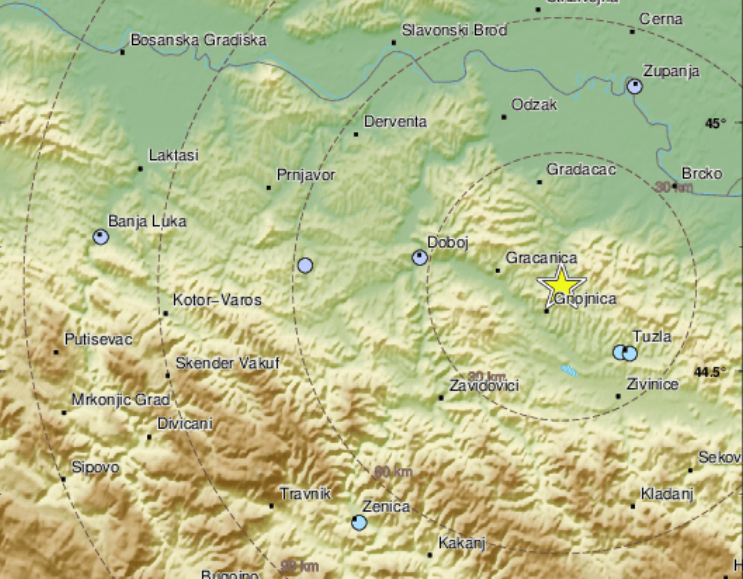 Prema podacima servisa EMSC, epicentar zemljotresa je 16 kilometara sjeverozapadno od Tuzle na dubini od dva kilometra.