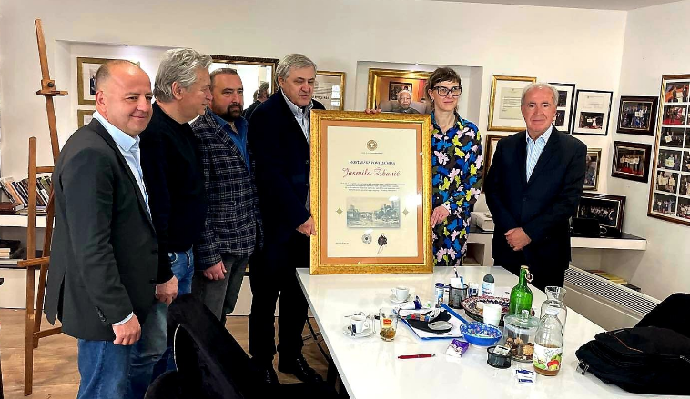 – Zajedno sa svojim suprugom i direktorom produkcijske kuće “Deblokada”, Damirom Ibrahimovićem, Jasmila je danas sa velikim zanimanjem obišla prostorije Centra za mir, TV kanala Historija koji emituje naš centar te Arhiv koji je uvakufljen u Karađoz-begovoj medresi i dostupan istaživačima i historičarima. Naši gosti su bili oduševljeni zbirkom dokumenata, audio i video građe vezane za svjedočenje o najtežim vremenima kroz koja je prošao Mostar, navode iz Centra za mir.