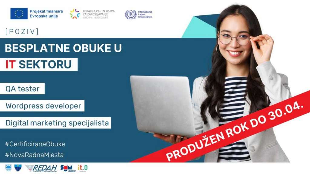 Ako se nalazite na evidenciji službe za zapošljavanje na području Hercegovine i imate minimalno srednju stručnu spremu, ovo je odlična prilika da usavršite svoja znanja i osposobite se za zanimanja budućnosti, te time značajno povećate svoju mogućnost zapošljavanja u najbrže rastućem sektoru, IT sektoru, priopćeno je iz agencije REDAH.