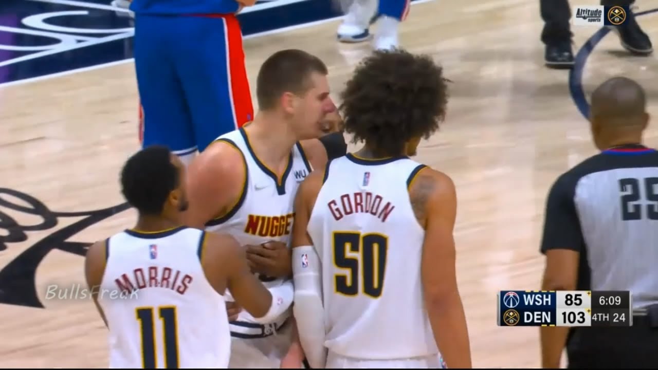 Srpski centar Denvera na utakmici protiv Washingtona ušao je u dva napada zaredom u sukob sa Spencerom Dinwiddiejem. Prvi put je Dinwiddie postigao poen tako što je laktom udario Jokića, koji je s bolnim izrazom lica pao na parket, a kasnije je u napadu Denvera Dinwiddie nekoliko puta laktovima i šakama pogodio Jokića dok je Srbin postavljao blok.