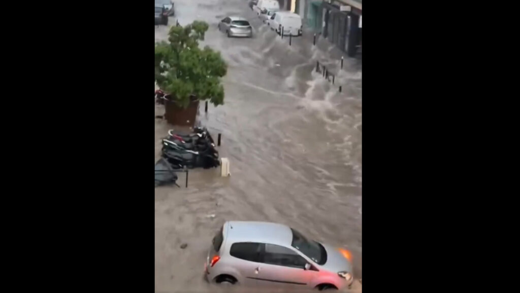 In France, the streets of Cannes turned into rivers this morning following torrential rain 🌊👀pic.twitter.com/spe4KfdHL3