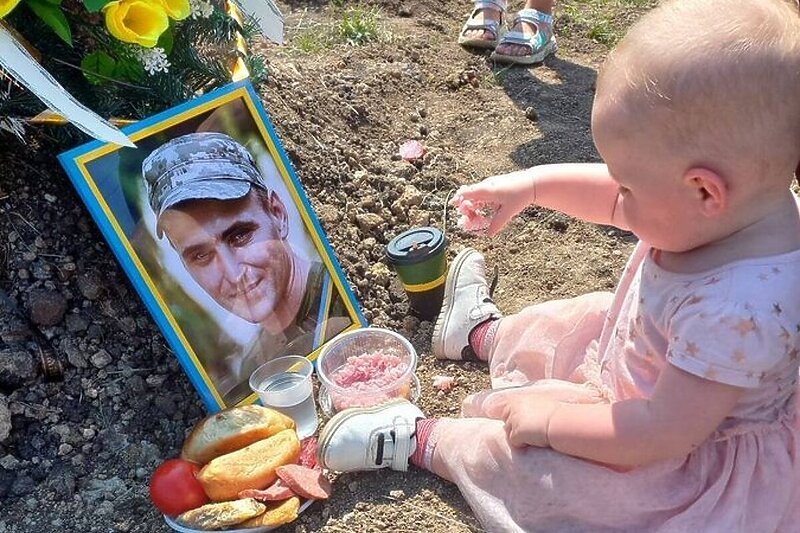 Kćerka Vladislava Soldata za svoj prvi rođendan u ružičastoj haljini sjedi i doručkuje na grobu svog oca, ukrajinskog ratnog heroja ubijenog dok je branio svoju zemlju od ruske invazije.