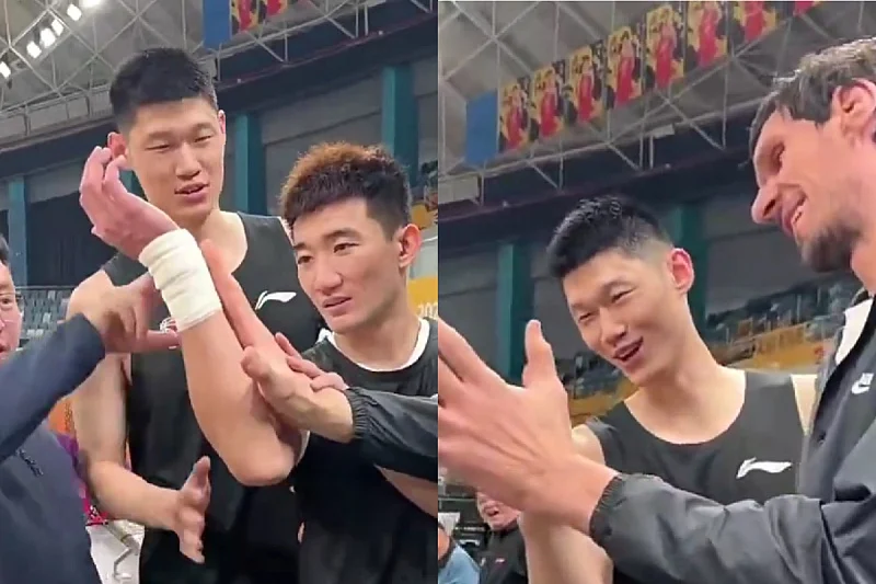 Tamo je Marjanović potpisao ugovor s ekipom Zhejiang Lionsa, a danas se pojavio i na treningu s ekipom. Tamo su ga dočekali novi saigrači, a oni su ostali zapanjeni veličinom Bobanovih šaka.