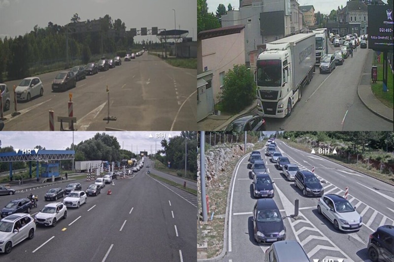 Duga su zadržavanja u oba smjera na graničnom prelazu Gradina, a na izlazu iz naše zemlje na graničnim prelazima: Bosanska Kostajnica, Bosanska Dubica, Bosanski Brod, Bosanska Gradiška, Doljani, Izačić i Velika Kladuša. Pojačan je promet vozila na ulazu u našu zemlju na graničnim prelazima: Karakaj, Šepak, Pavlovića Most, Zupci i Rača. Napominjemo da su čekanja na graničnim prelazima podložna čestim izmjenama. Vozači mogu pogledati kamere na našoj web stranici bihamk.ba.