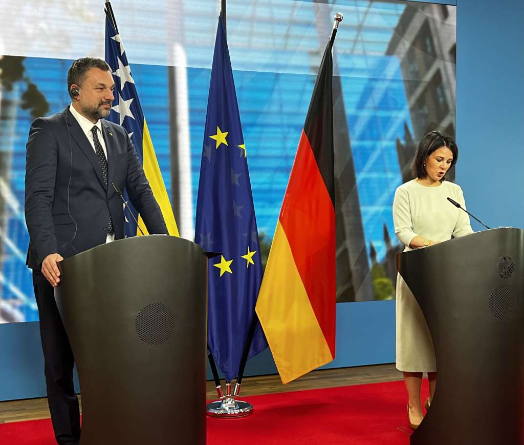 Šefica njemačke diplomatije Baerbock je kazala da Njemačka podržava proces EU integracija i drži da je važno da se unaprijede oblasti vladavine prava, demokratije i ekonomskog razvoja, odnosno brže sprovođenje neophodnih reformi u BiH.