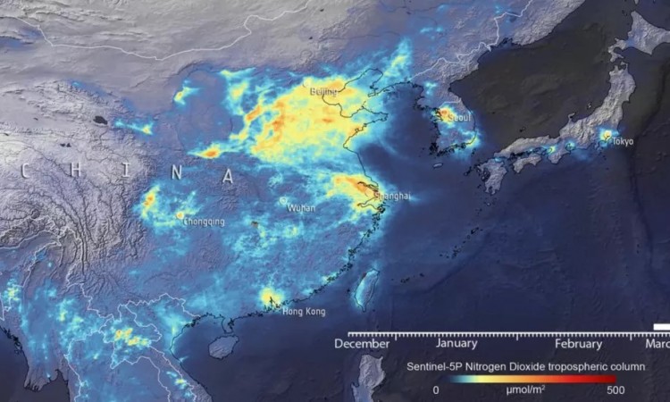 Slike američke svemirske agencije NASA pokazuju da je u februaru koncentracija azotnog dioksida (NO2) dramatično opala u Wuhanu u Kini, epicentru pandemije Covida-19. Indikatori za kvalitet zraka u ovom gradu su bili crveni/narandžasti što je signaliziralo da je zrak veoma nezdrav, ali su u međuvremenu prešli na plavu boju što signalizira da je kvalitet zraka dobar.