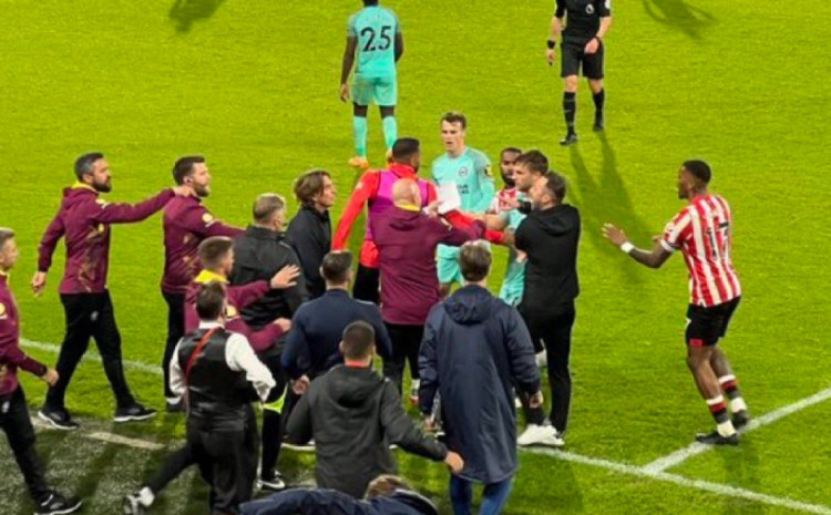 Fizički sukob spriječili su igrači obje ekipe, a dvojica trenera kažnjena su žutim kartonima.