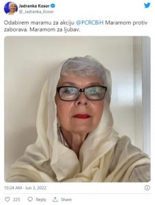 – Odabirem maramu za akciju PCRCBiH. Maramom protiv zaborava. Maramom za ljubav – napisala je u komentaru uz objavljenu fotografiju.