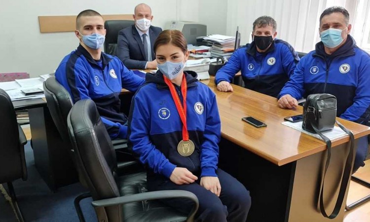 Nakon rezultata reprezentativke Bosne i Hercegovine u boksu Tare Bohatjuk koja je osvojila bronzanu medalju na nedavno održanom Evropskom prvenstvu, danas je Ministarstvo kulture i sporta upriličilo prijem za ovu vrhunsku bosanskohercegovačku sportistkinju i njen tim.