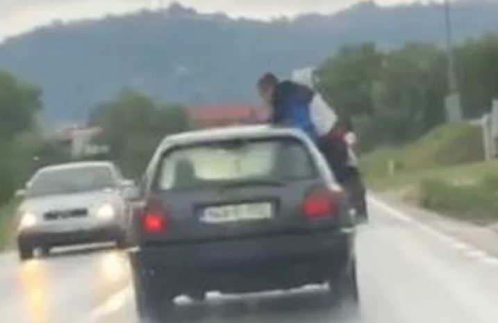 Momak sa suvozačevog sedišta, otvorio je prozor i kroz njega, dok je automobil bio u pokretu do pojasa izašao kako bi obrisao šoferku.