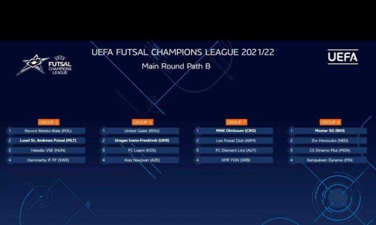 Futsal klub Mostar Stari Grad Staklorad u Glavnoj rundi (Main round) UEFA-ine Lige prvaka igrat će protiv Kampuksen Dynama (Finska), CS Dinama Plus (Moldavija) i ZVV Hovocuba (Nizozemska).
