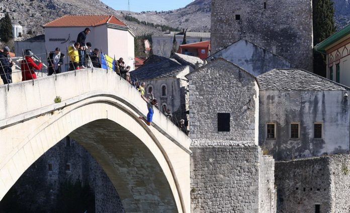 Klub skakača u vodu ”Mostari” obilježio je Dan nezavisnosti BiH tradicionalnim skokom sa Starog mosta.