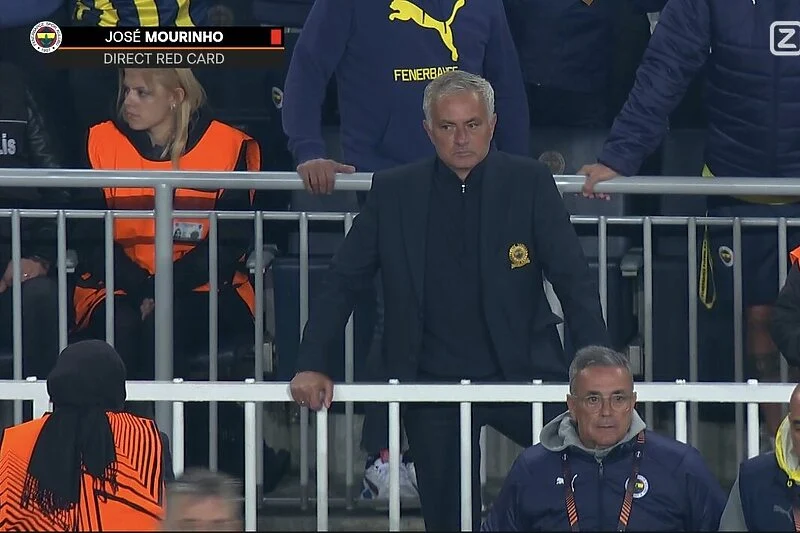 U 58. minuti trener Fenerbahčea Jose Mourinho je zaradio crveni karton protiv svog bivšeg kluba, nakon što je protestvovao nakon jedne sudijske odluke.