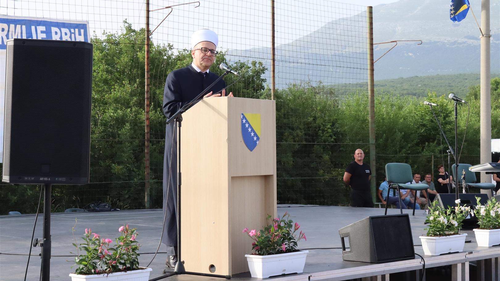 – Ako želite opstanak ovog našeg naroda, njegovu slobodu, čast i dostojanstvo onda poslušajte današnje poruke koje vam se šalju iz Podveležja, s krila naše slobode. Zato trebamo, kao na Žući, izgraditi krila slobode na ulasku u ovaj prostor, na Fortici gdje je državna zastava. Nećemo mi tamo podizati mjesec i zvijezdu kao što su nam predlagali. Mi naše simbole nećemo zloupotrebljavati. Nama trebaju državotvorni simboli, simboli slobode, pečat koji su Bošnjaci Mostara, Hercegovine i ovoga Podveležja utkali u našu slobodu. Treba nam takve mudrosti i onda će to biti vjernost ideji i vjernost zastavi – poručio je muftija.