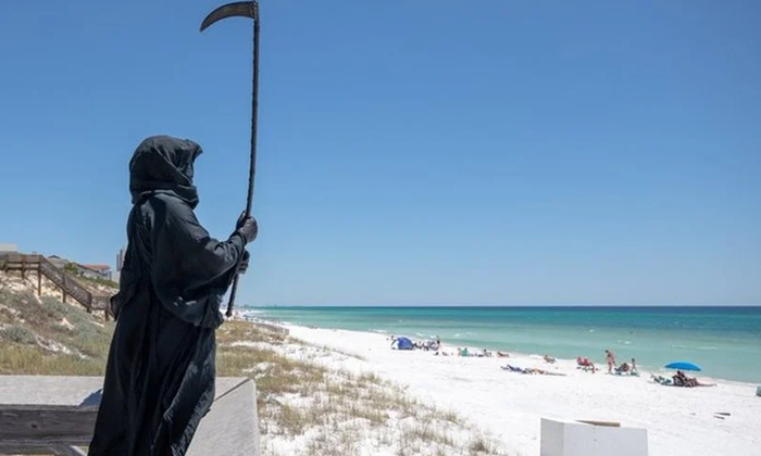 Muškarac odjeven u kostim Smrti pojavio se na plažama na Floridi u znak protesta zbog njihovog otvaranja u vrijeme pandemije koronavirusa.