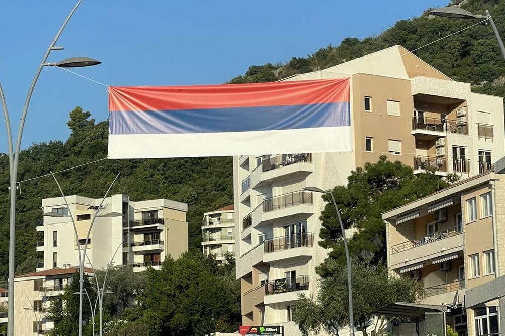 Na budvanskom i bečićkom bulevaru okačene su preko saobraćajnica velike zastave trobojke.