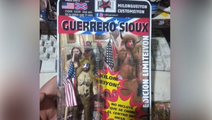 Ieie Milonga radi akcione figure Jacob Anthony Chansley, drugim imenom Jake Angeli iz Arizone, čije su snimci i fotografije obišle svijet.