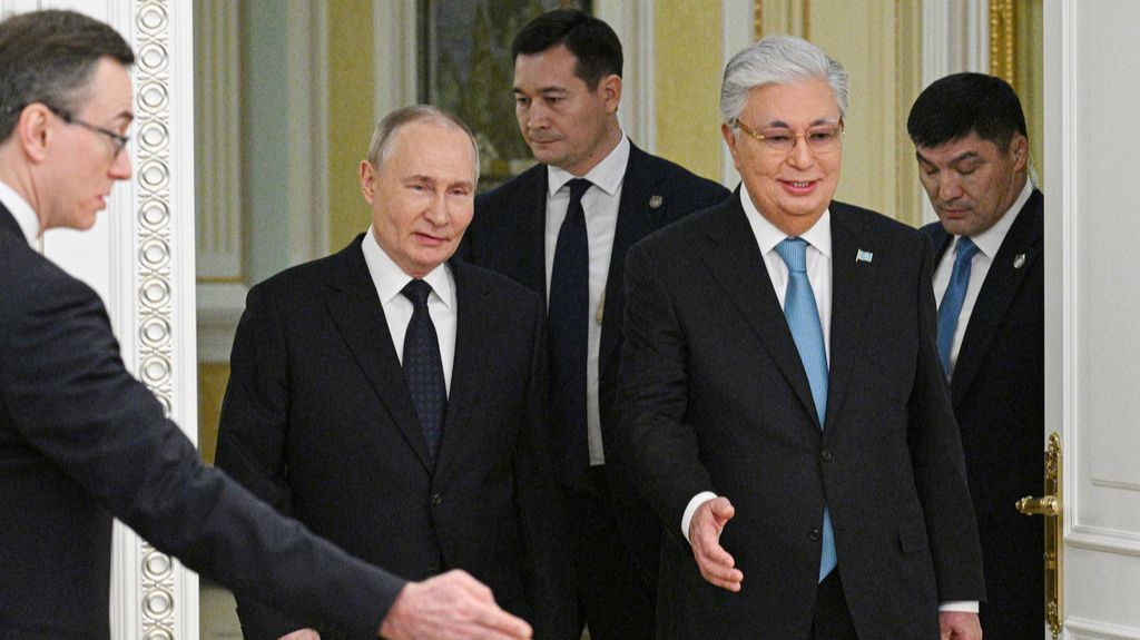 Putina je dočekao predsjednik Kasim-Žomart Tokajev, a uoči dolaska na nebu su borbeni avioni priredili performans.